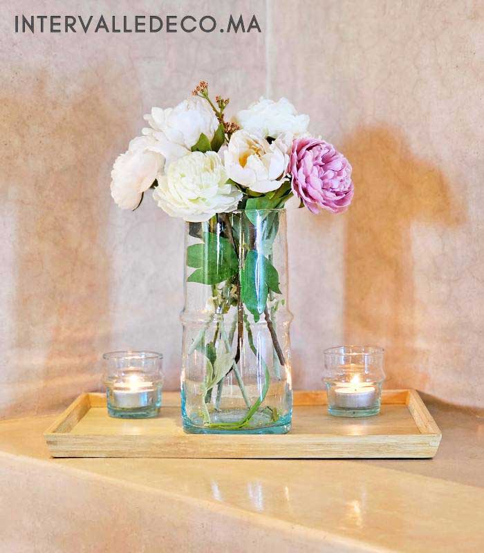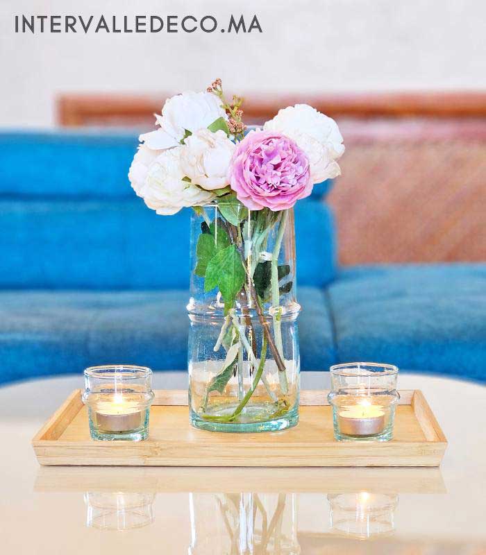 Coffret cadeau artisanal – Vase en verre soufflé et deux bougeoirs Beldi transparents