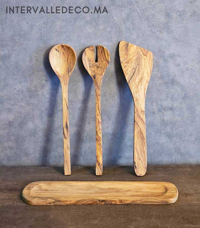 Les ustensiles en bois d’olivier sont appréciés pour leur solidité, leur usage sain et leur longévité. Ce coffret réunit des pièces utiles au quotidien, fabriquées à partir de bois d’olivier marocain. Contrairement aux ustensiles industriels, ces objets ne rayent pas les surfaces, ne retiennent pas les odeurs et résistent bien à l’humidité. Chaque élément est façonné dans une seule pièce de bois, avec un soin particulier apporté à la finition. Il s’agit d’un coffret simple, naturel et durable, pensé pour être utilisé chaque jour.