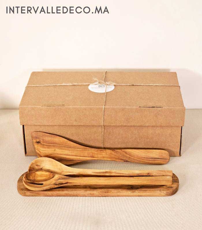 Coffret ustensiles en bois d’olivier artisanal – Cuisine naturelle