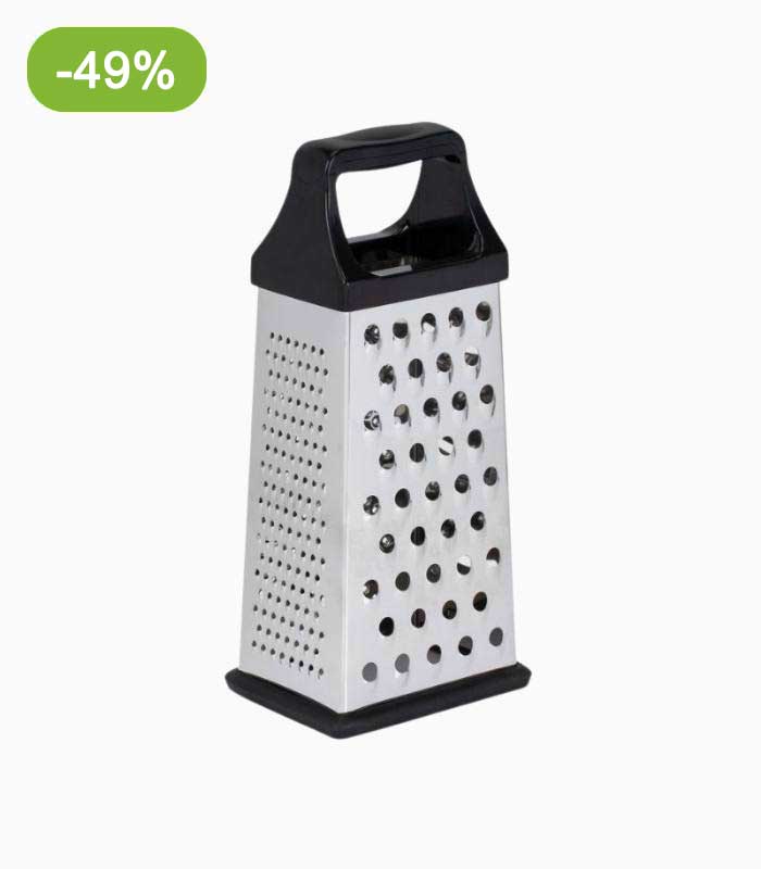 Râpe en inox 4 faces avec poignée ergonomique et base antidérapante